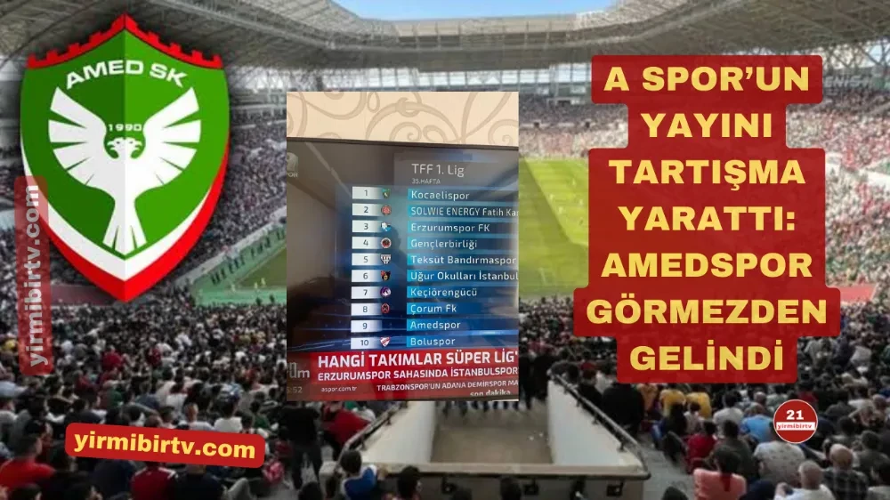 TFF 1. Lig'de play-off mücadelesi veren Amedspor ve Iğdır FK, bu kez saha içindeki başarılarıyla değil, ekranlarda maruz kaldıkları bir sansürle gündeme geldi. Spor yayıncılığı yapan A Spor kanalında paylaşılan 1. Lig puan durumu tablosunda dikkat çeken bir detay, sosyal medyada infiale yol açtı.