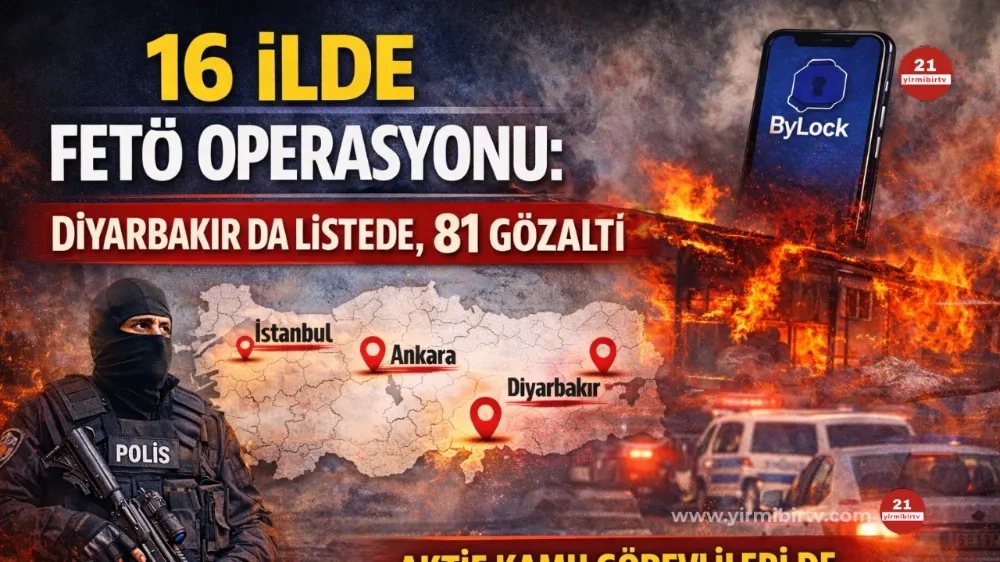 İçişleri Bakanı Ali Yerlikaya, aralarında Diyarbakır'ın da bulunduğu 16 ilde FETÖ'ye yönelik geniş kapsamlı operasyonlar gerçekleştirildiğini duyurdu. Eş zamanlı baskınlarda, aktif görevde bulunan kamu personelinin de aralarında olduğu 81 şüpheli gözaltına alındı.