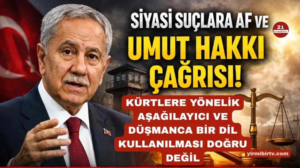 Eski TBMM Başkanı ve AK Parti’nin kurucularından Bülent Arınç, siyasi suçlara ilişkin af ve “umut hakkı” dahil olmak üzere tüm hukuki seçeneklerin değerlendirilmesi gerektiğini söyledi. Kürtlere yönelik kullanılan dili de eleştiren Arınç, “aşağılayıcı ve düşmanca ifadeler doğru değil” diyerek empati çağrısı yaptı.